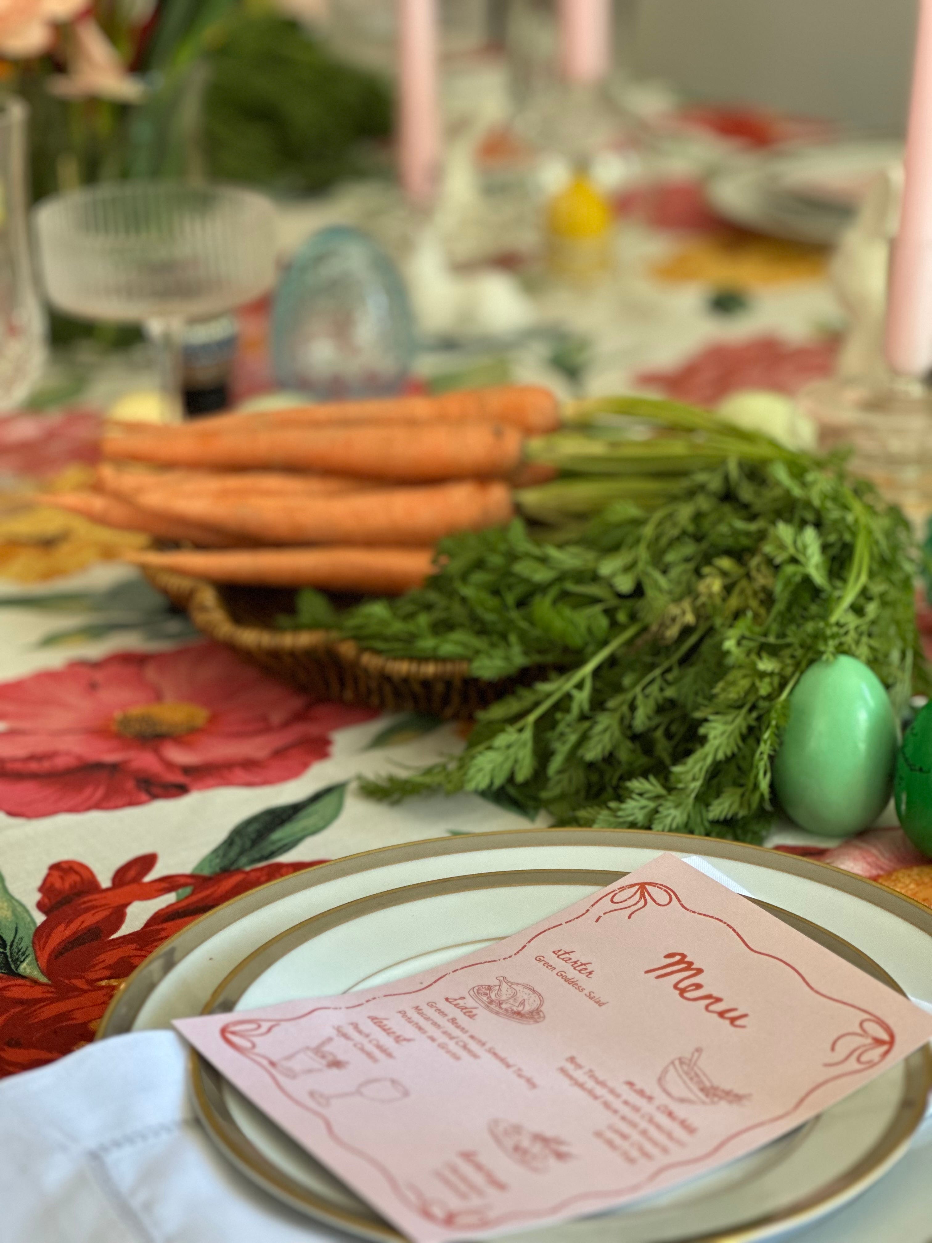 Creating an elevated Easter table is all about taking familiar symbols — bunnies, carrots, eggs — and styling them in unexpected, beautiful ways. Here are a few ideas you can “steal” for your own table: